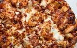 Chicken breast, BBQ sauce, onion, and fresh bacon.